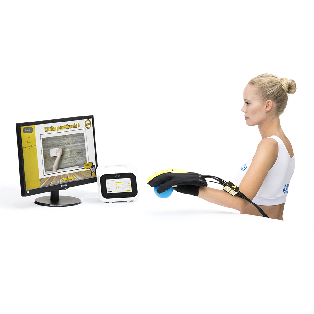 • Akcesoria standardowe: jednostka sterująca, zestaw przewodów, rękawica w rozmiarze S,M,L, dla lewej oraz dla prawej ręki, opaska na kciuk, pasek na nadgarstek
