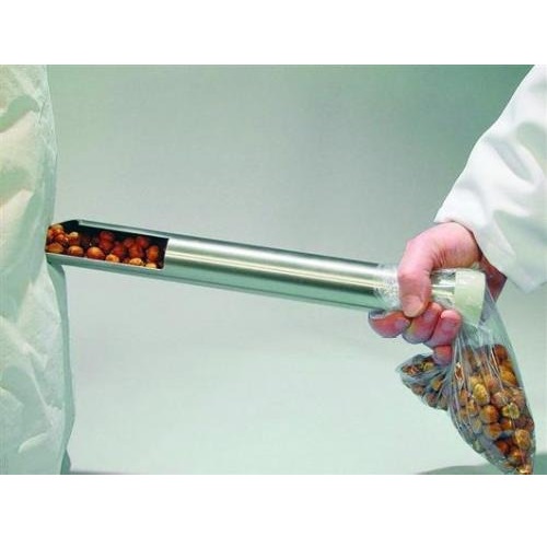 Tuby do poboru próbek gruboziarnistych produktów sypkich o śred. do 1 cm. Umożliwiają pobór np.: orzechów laskowych, liści herbaty, ziaren lub podobnych materiałów bezpośrednio z dużych worków. Działanie: Umieścić próbnik w worku na żądanej głębokości, jednocześnie trzymając ręką zamkniętą tubę probierczą. Po zdjęciu ręki z uchwytu próbka wsypuje się przez otwartą tubę bezpośrednio do przymocowanego naczynia lub worka na próbki.