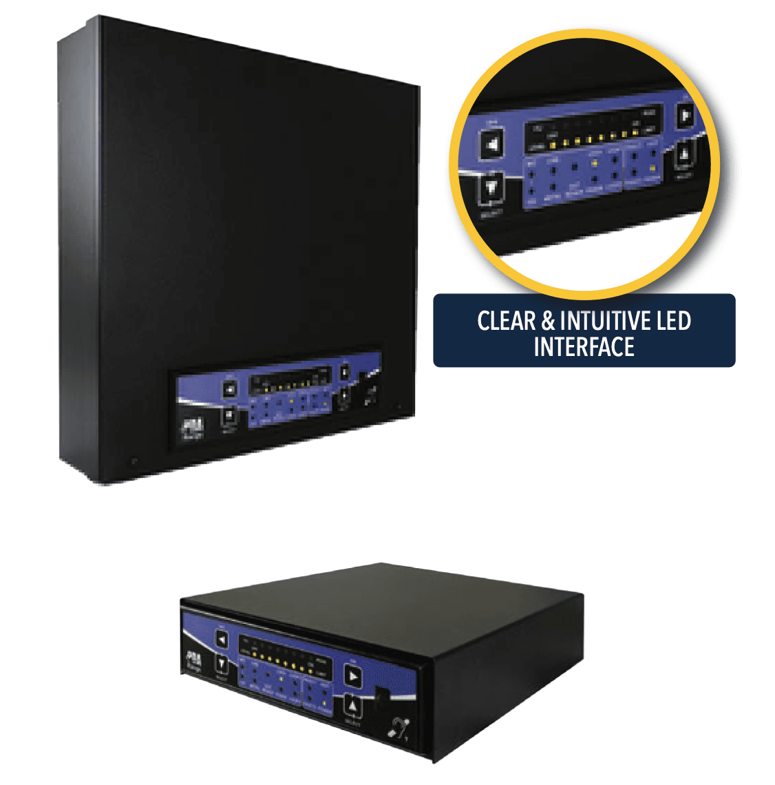 - Wysokowydajne wzmacniacze pętli indukcyjnej z pętlą fazową i wyjściami klasy D, zapewniające maksymalną efektywność.