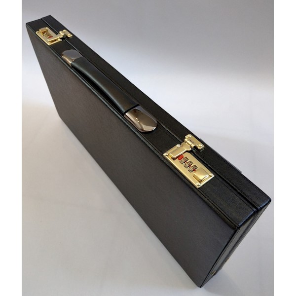 Zestaw szkieł probierczych w eleganckiej walizce skórzanej z możliwością wyjmowania drewnianej wyściełanej kasetki.
