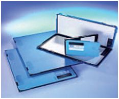 Lekkie, wytrzymałe plastikowe kasety (ABS) na błony rentgenowskie z okienkami identyfikacyjnymi (US, EU) lub bez okienek firmy CAWO, dostępne w rozmiarach (cm):