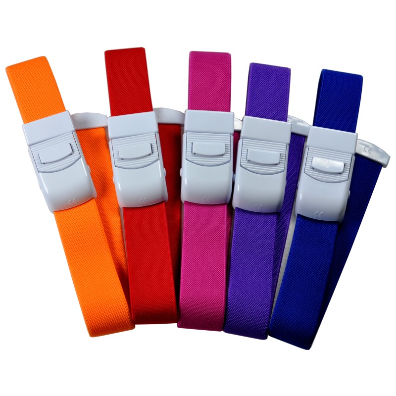 Staza samozaciskowa wykonana jest z szerokiej rozciągliwej taśmy, co powoduje, że siła ucisku jest znacznie zredukowana.