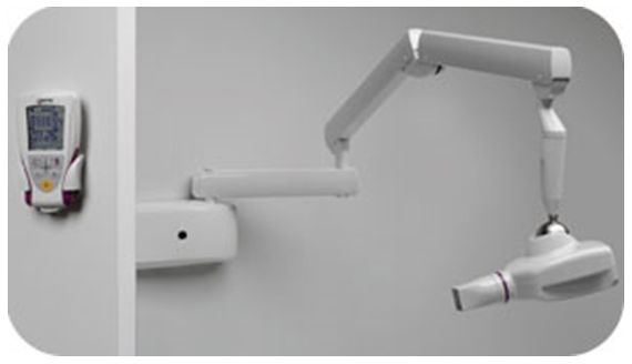 Aparat RTG wysokiej częstotliwości. Stałe napięcie, ognisko 0,4 mm. Głowica na łączniku kulowym z blokadą elektromagnetyczną z dotykowym włącznikiem. Pilot bezprzewodowy.
