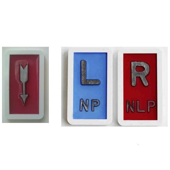 Komplet literek ołowianych "R" i "L" + marker wskazujący Pb "STRZAŁKA".