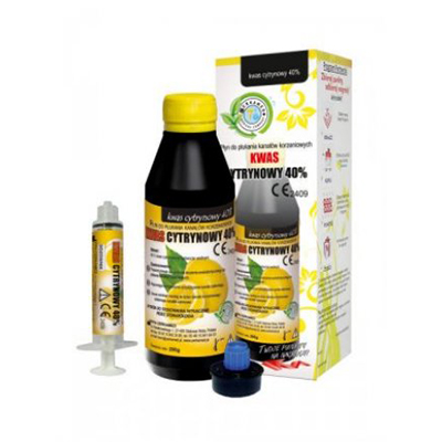 KWAS CYTRYNOWY 40% usuwa warstwę mazistą powstałą w trakcie mechanicznego opracowywania kanału. Pozwala to na odsłonięcie ujść kanalików zębinowych, dokładne oczyszczenie ich wnętrza z resztek miazgi, a następnie