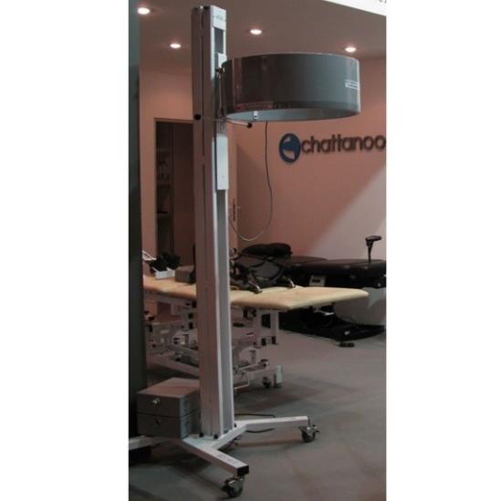 Pionizator do magnetoterapii umożliwiający mocowanie oraz przesuwanie w pionie aplikatora szpulowego o średnicy 600 mm. Konstrukcja stalowa wyposażona w koła jezdne z hamulcem. Płynna regulacja położenia aplikatora wyposażona w mechanizm samohamujacy.