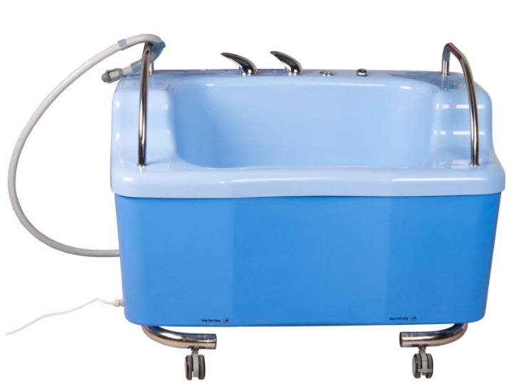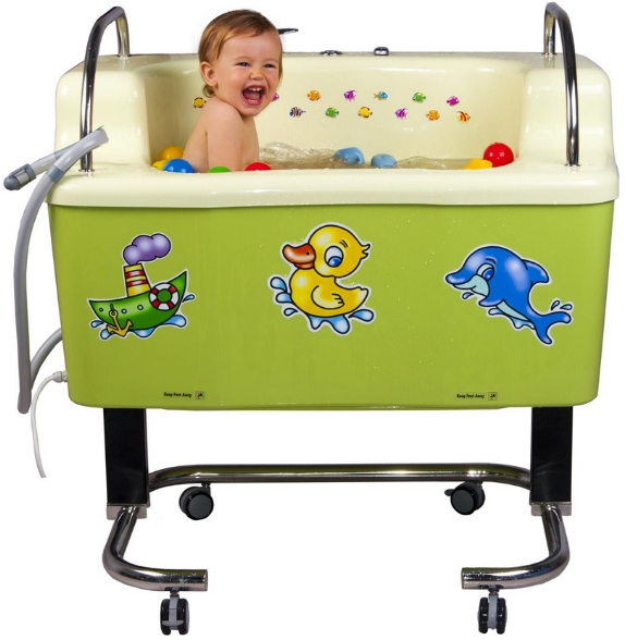 Lastura Baby nie wymaga stałych przyłączy wodno – kanalizacyjnych, dzięki czemu możemy podjechać z nią do sali, w której przebywa mały pacjent bez konieczności jego transportu. Kółka jezdne w podstawie wanny umożliwiają łatwe jej przemieszczanie.
