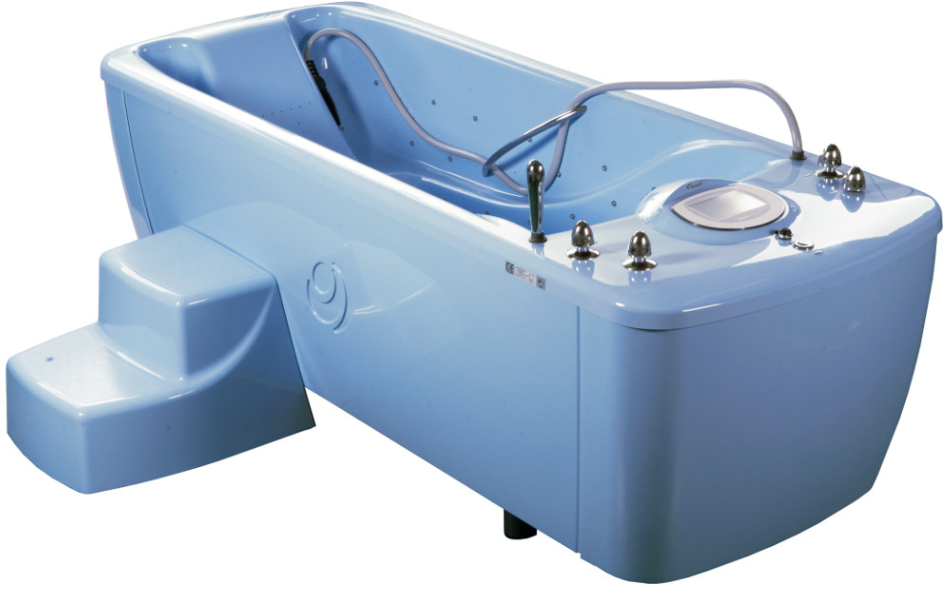 Schodki wysokie ułatwiające wchodzenie i wychodzenie z wanny z antypoślizgową powierzchnią.