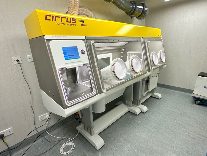 - Jednokierunkowy przepływ powietrza klasy EU GMP A w obszarze roboczym i portach transferowych, utrzymujący aseptyczne warunki i zabezpieczający produkt.