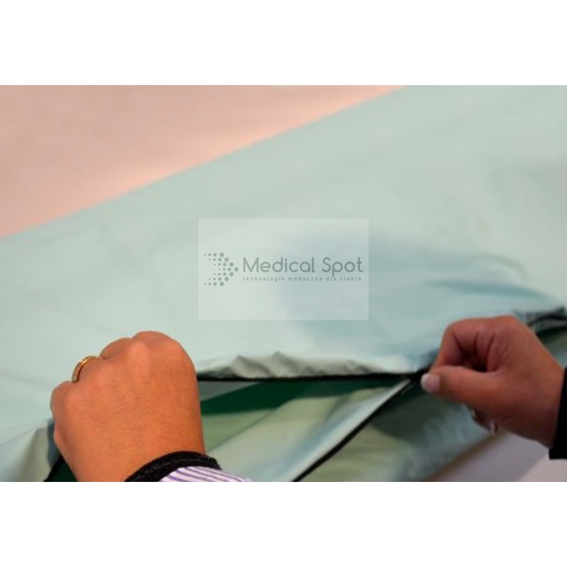 o wysokim standardzie higieny. Jej właściwości wodoodporne oraz bakteriostatyczne zapewniają bezpieczeństwo użytkowania zarówno na sali operacyjnej, transportu pacjentów lub opieki długoterminowej.Dodatkowo łatwość utrzymania czystości sprawia, że kołdrę można szybko odkażać po każdym użyciu. Wybór rozmiarów kołdry czyni ją produktem wszechstronnym i wielofunkcyjnym, idealnym do zastosowań medycznych.