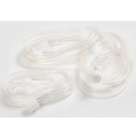 Dren przedłużający o długości 75cm lub 140cm do lini infuzyjnych z PVC, zakończony złączami: LL męski z osłonką oraz LL żeński z osłonką.