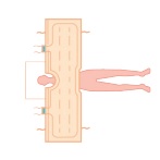 - Koc z nacięciem o długości 40 cm nad brzuchem i klatką piersiową pacjenta zapewnia dostęp chirurgiczny.