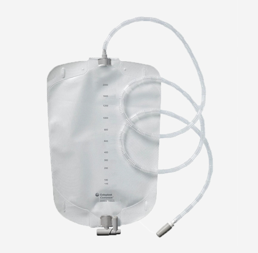 Bezpieczny i niezawodny worek do zbiórki moczu z antyskrętnym drenem.