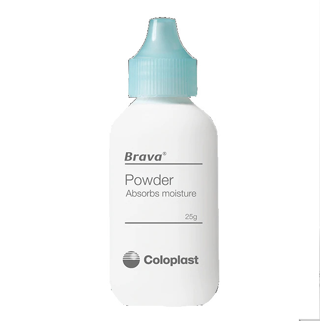 Puder Brava zmniejsza podrażnienie skóry związane z jej nadmierną wilgotnością. Absorbuje wilgoć, utrzymując suchość skóry. Można go używać wokół stomii lub pod przylepcem.