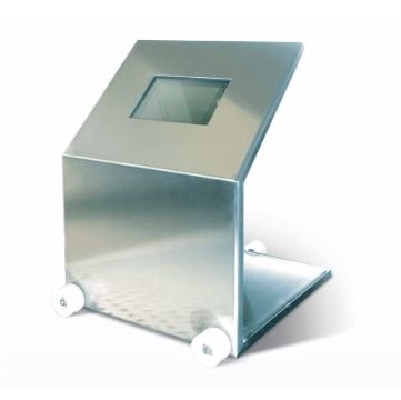 Zabezpieczenie przesuwne ze stali nierdzewnej z osłoną ołowiową i szklanym okienkiem.