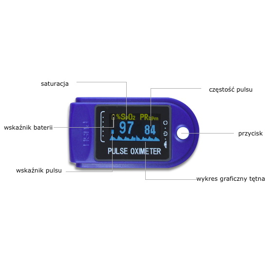 Pulsoksymetr napalcowy CMS 50D to podręczne urządzenie do oznaczania wysycenia krwi tlenem i rejestracji częstości pracy serca (pulsu) przeznaczone do użytku medycznego, ale również do samopkontroli stanu zdrowia i dla osób spędzających aktywnie czas