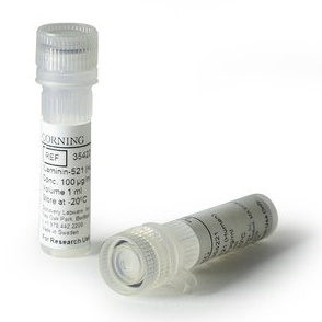 Corning® rLaminina-521 (ludzka) jest heterotrimerem złożonym z łańcuchów α5, β2 i γ1 ulegających ekspresji w systemie hodowli komórek ssaków. rLaminina-521 (ludzka) wspiera długoterminową samoodnawianie ludzkich pluripotencjalnych komórek macierzystych (hPSC), w tym embrionalnych komórek macierzystych (hESC) i indukowanych pluripotencjalnych komórek macierzystych (iPSC) w określonych i wolnych od ksenonowych środowiskach. rLaminina-521 zapewnia dodatkowe korzyści, w tym niezależną od inhibitora ROCK ekspansję pojedynczych komórek PSC, co poprawia łatwość i wydajność hodowli hPSC.