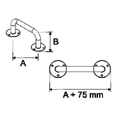 Informacja: Uchwyty o długości powyżej 1100 mm posiadają dodatkowy wspornik umiejscowiony w połowie długości poręczy.