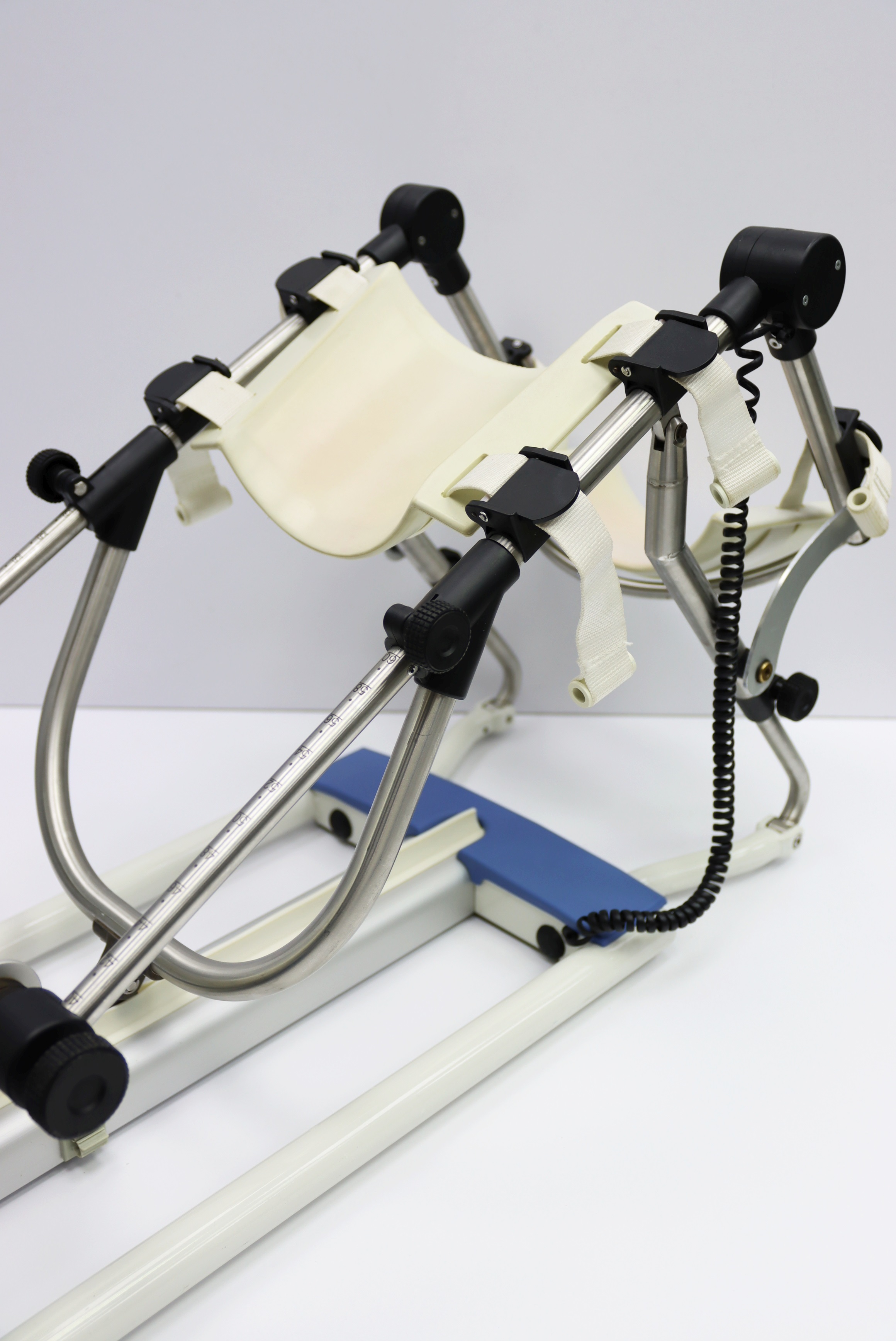 - Możliwość stosowania do lewej i prawej nogi, oraz pełne dostosowanie do budowy anatomicznej pacjenta (ustawienie urządzenia do długości kości udowej oraz piszczelowej),