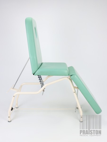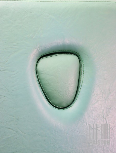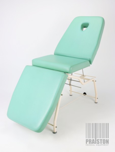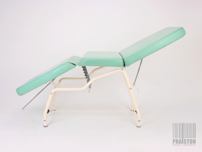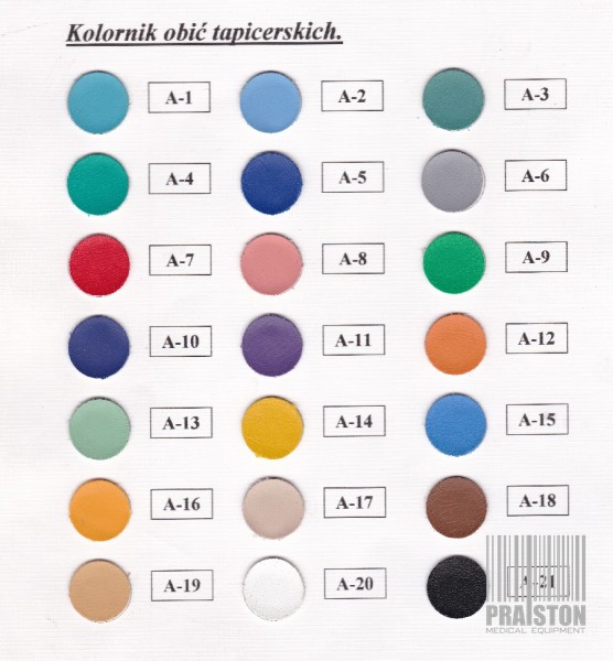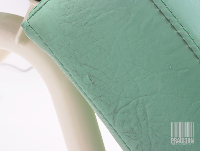 - Tapicerka z atestem medycznym w kolorze zielonym z widocznymi śladami użytkowania (możliwość wymiany tapicerki na nową, z naszego wzornika kolorów za dodatkową opłatą),