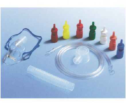 Maska tlenowa Venturiego pediatryczna, przylegająca pod brodę, 15 cm karbowana rurka, dren 210 cm, standardowe łączniki, 7 regulatorów przepływu - 24/28/31/35/40/50/60%. 50 sztuk/opakowanie