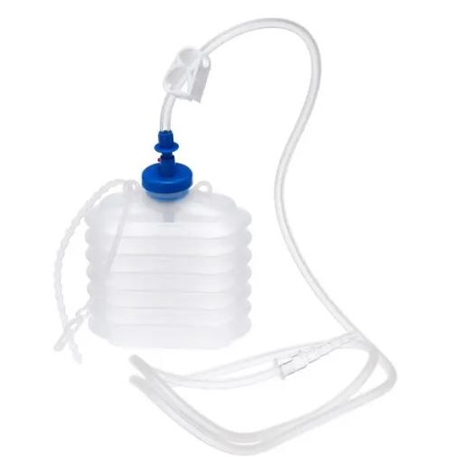 Butelka do drenażu niskociśnieniowego w kształcie harmonijki, umożliwiająca odprowadzenie zalegającej wydzieliny pooperacyjnej o pojemności 250 ml (0500022640) w zestawie z drenem zakończonym łącznikiem schodkowym w celu łatwiejszego połączenia, cały zestaw sterylny. Występuje również w wersji o pojemności 500 ml (0500022641).