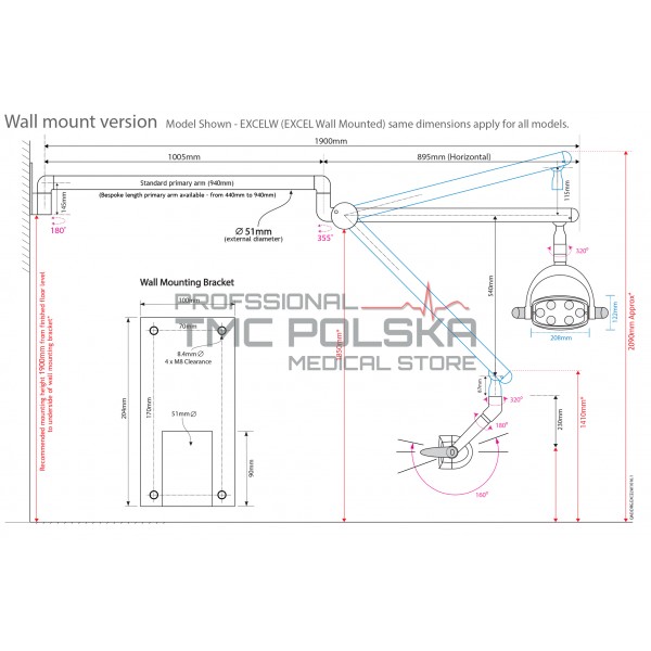 Parametry techniczne lampy stomatologicznej: