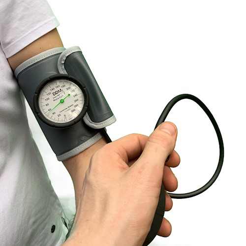 Ciśnieniomierz z zegarem na mankiecie to precyzyjny manometr z podziałką od 0 do 300 mmHg, z aneroidową membraną miedziano-berylową. Francuski design od firmy DD Medical Dessillons & Dutrillaux - producenta sprzętu i urządzeń medycznych od ponad 75 lat.