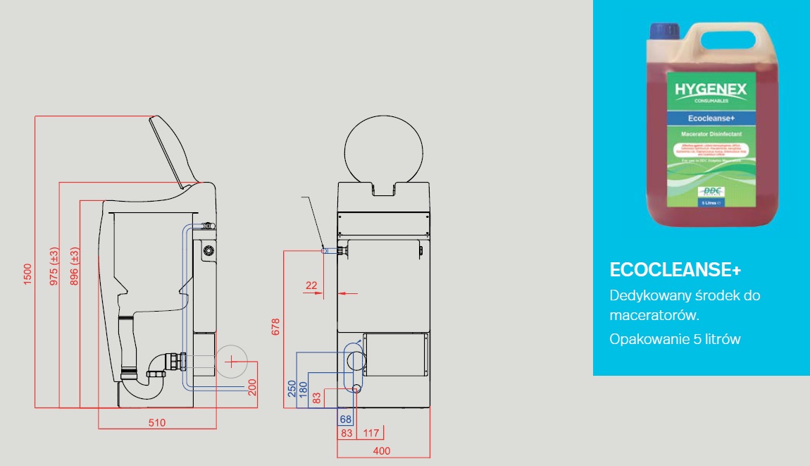 wodą oraz płynem ECOCLEANSE+ pozostawiając komorę czystą i przyjemnie pachnącą.