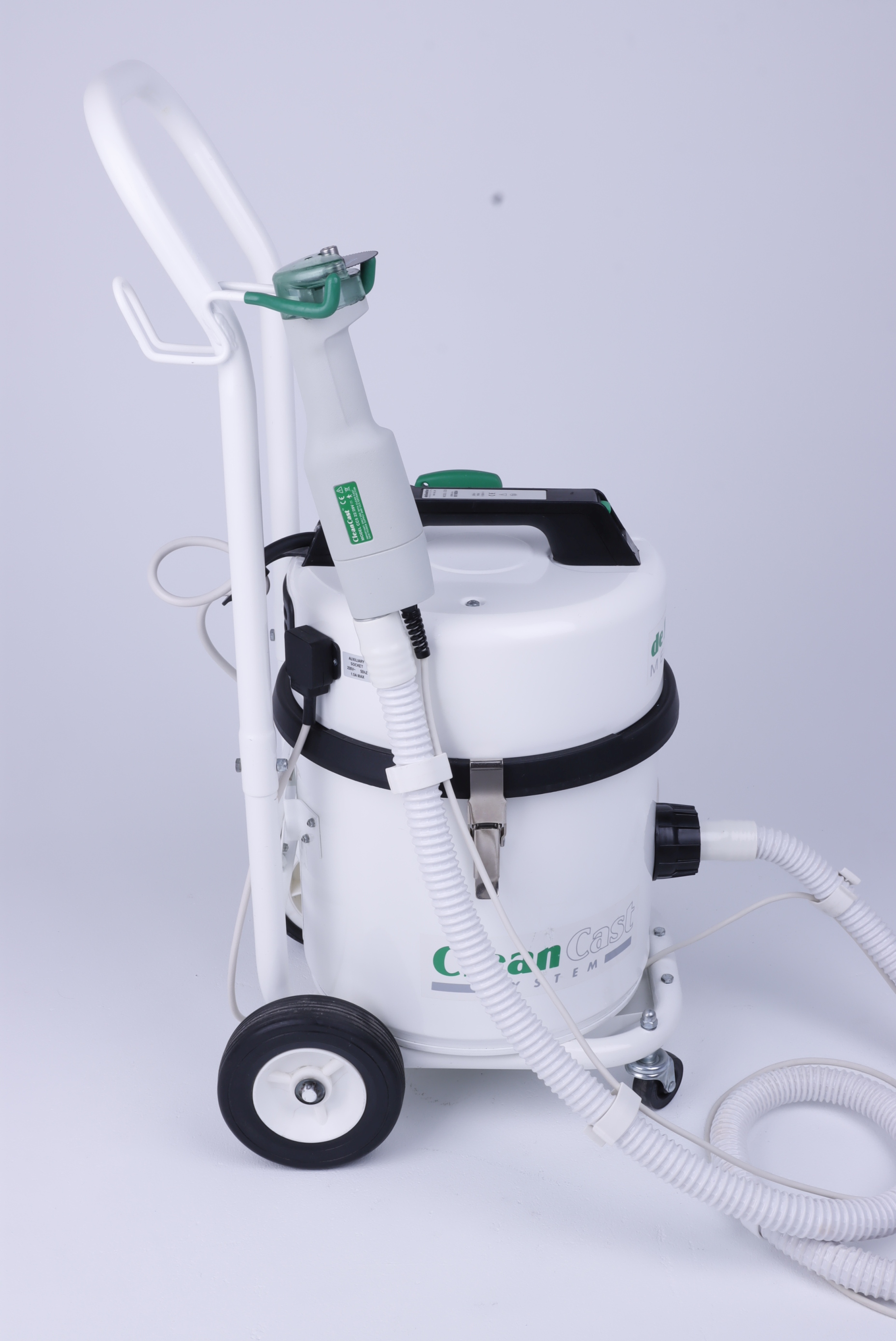 - Odkurzacz jest osadzony na wózku i zabezpieczony klamrą spinającą,