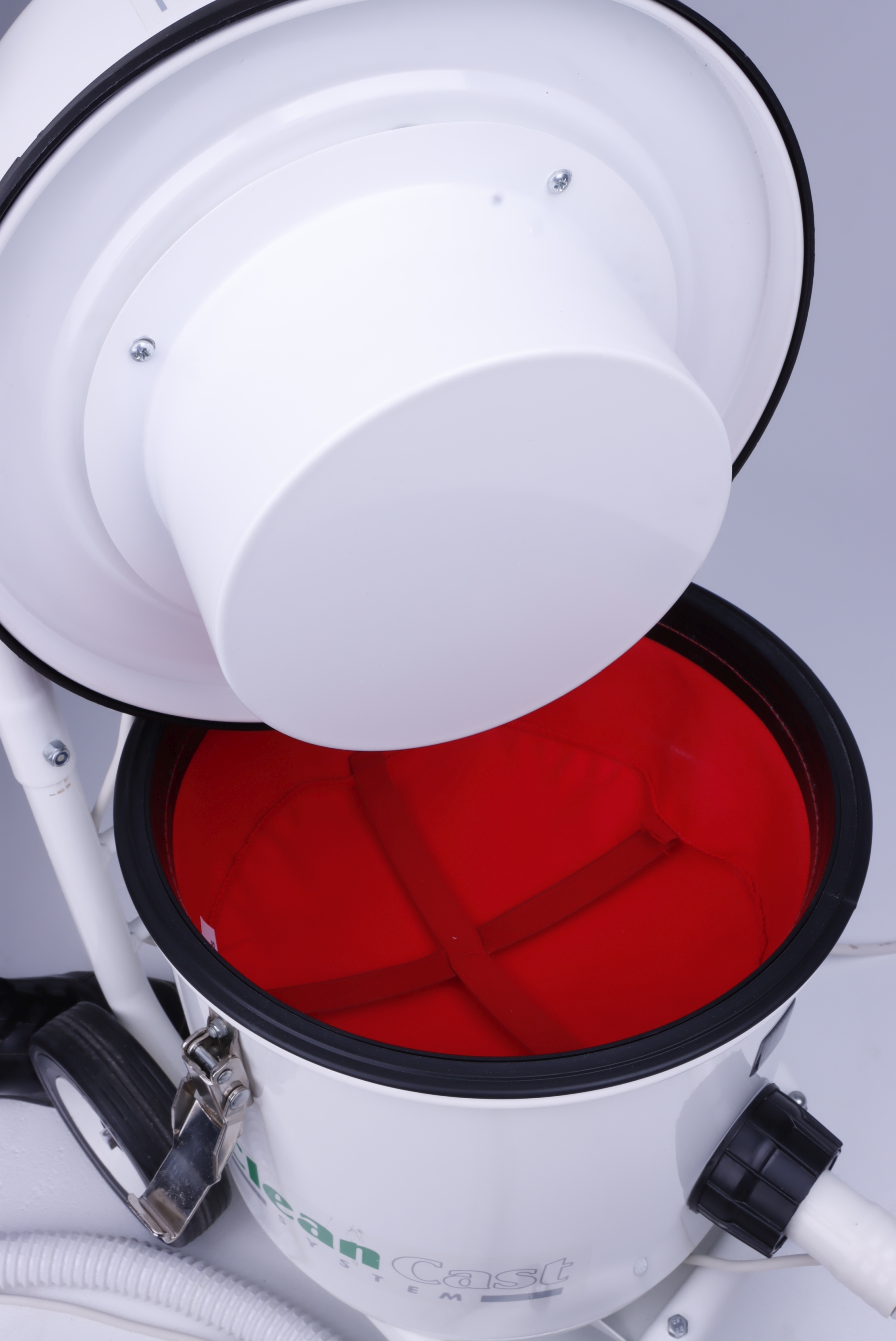 - Odciąg pyłu CleanCast CCS, zapewniający silne zasysanie powietrza w miejscu cięcia w celu usunięcia oparów, odłamków i pyłu,