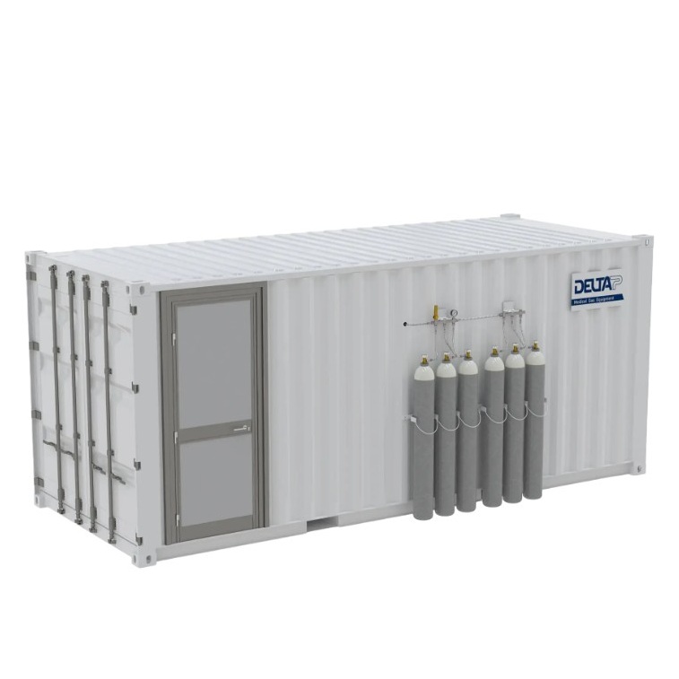 Wszystkie komponenty pneumatyczne i elektryczne są fabrycznie montowane i testowane w pełni wyposażonym kontenerze morskim, gotowym do szybkiej instalacji i natychmiastowego działania.