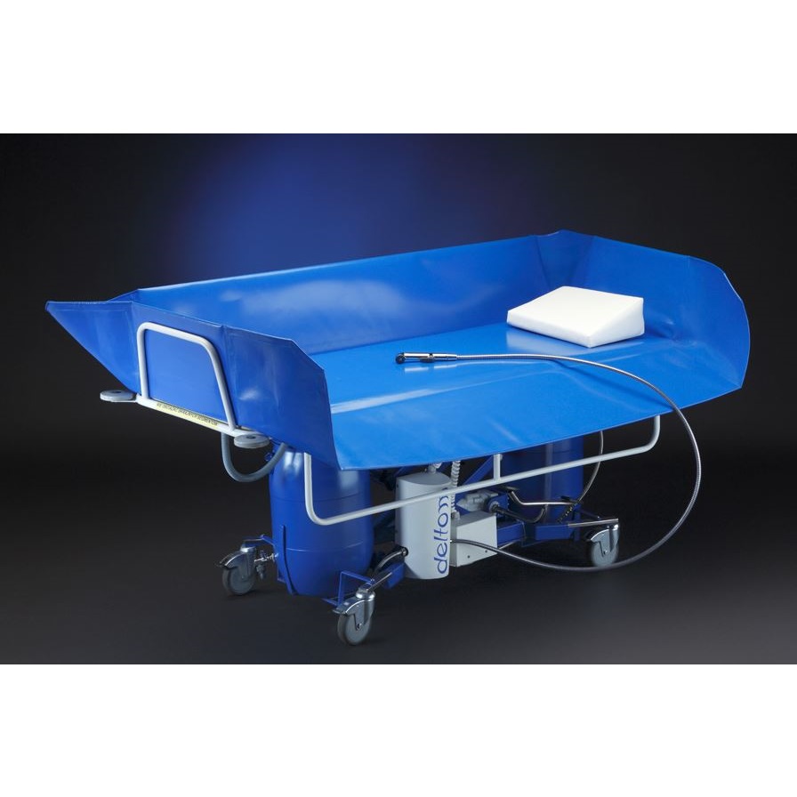 Wózek wanna do kąpieli firmy DELTOM z własnym systemem zasilania w wodę jest urządzeniem umożliwiającym przyłóżkową pielęgnację pacjenta niezależnie od warunków istniejących w pomieszczeniu.