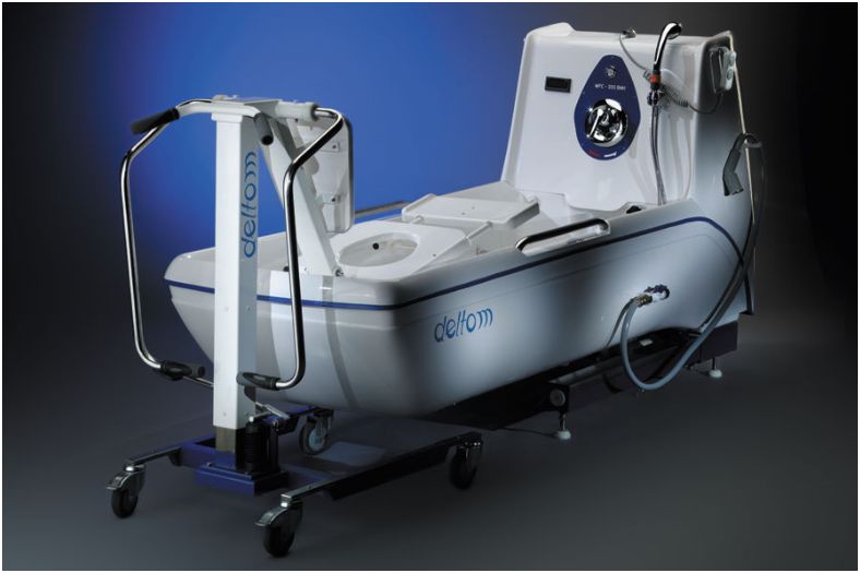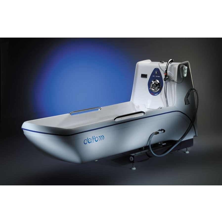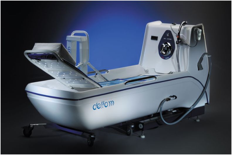 Wanna podnoszona do kąpieli osób niepełnosprawnych i obłożnie chorych (dwie pojemności 300 i 220 l) jest podstawowym urządzeniem z palety produktów DELTOM. Występuje w kilku odmianach wyposażenia, a konfigurowana z innym, współpracującym sprzętem daje wiele zestawów i systemów do higieny, pielęgnacji i rehabilitacji pacjentów. Nasza wanna medyczna (pielęgnacyjna) posiada zalety przynoszące ulgę pacjentom oraz wspierające personel i opiekunów medycznych w ich pracy. Wanna z hydromasażem pozwala na rehabilitacyjny masaż całego ciała, co zapewnia chorym komfort i relaks podczas kąpieli. Wanna pielęgnacyjna z wózkiem - podnośnikiem do kąpieli w pozycji leżącej lub siedzącej stanowi "zintegrowany system do higieny osobistej, transportu i hydroterapii osób niepełnosprawnych i obłożnie chorych". System ten stwarza możliwość wykonania pełnego cyklu pielęgnacyjnego (od łóżka do łóżka) przy minimalnym wysiłku ze strony personelu. Wyposażona w : * hydrauliczny mechanizm podnoszenia * baterię wody mieszalną lub termostatyczną * prysznic * termometr * instalację hydromasażu podwodnego z dyszą do masażu miejscowego * system dezynfekcji wanny i instalacji hydromasażu * system osuszania wanny * poręcze do podtrzymywania i podpory pod stopy * zawór do mechanicznego opuszczania wanny