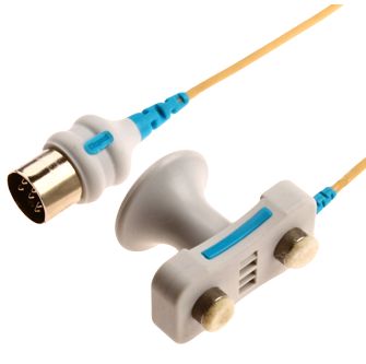 Bipolarna elektroda stymulacyjna z rozstawem 25mm. Materiał elektrody stal nierdzewna i filcowe wałeczki. Elektroda odpowiednia do stymulacji nerwów, które są głęboko pod skórą. Długość ekranowanego przewodu 2m, złącze DIN 5-pinowe