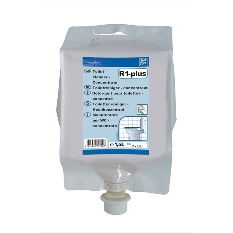 Room Care R1 Plus jest skoncentrowanym preparatem do codziennego mycia i czyszczenia muszli klozetowych oraz pisuarów, opracowany tylko dla systemów Divermite oraz DQFM firmy Diversey.