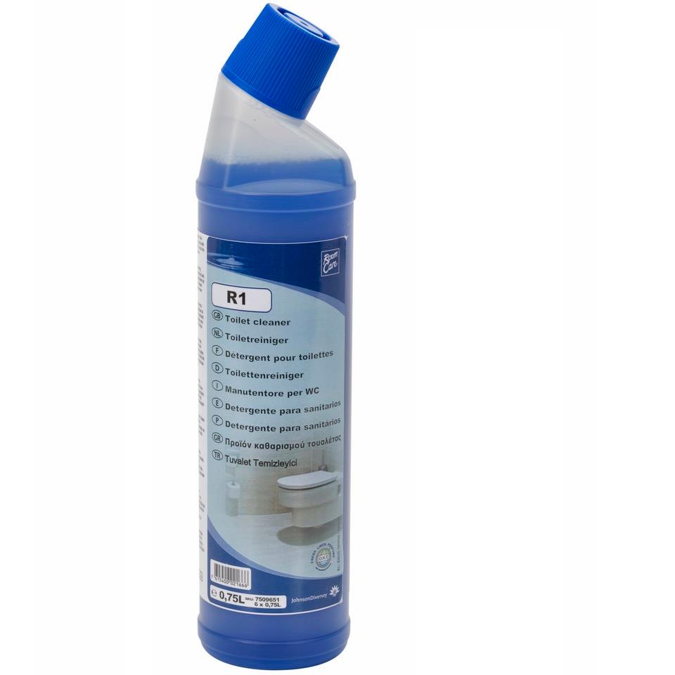 Preparat do mycia, czyszczenia i odkażania muszli klozetowych. Skutecznie zapobiega osadzaniu się kamienia wapiennego i zabija bakterie. Produkt ten to gęsty płyn o barwie niebieskiej, zawierający kwasy organiczne, niejonowe i kationowe związki powierzchniowo czynne oraz substancje zapachowe. Room Care R1 pozostawia przyjemny, świeży zapach.