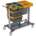 Wózek przeznaczony do pracy metodą na wilgotno. Wózek wyposażony jest we wszystko czego potrzebuje jego operator. Ścierki, mopy i akcesoria można bez problemu umieścić na wózku w zasięgu ręki.