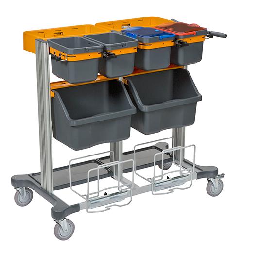 Wózek przeznaczony do pracy metodą na wilgotno. Wózek wyposażony jest we wszystko czego potrzebuje jego operator. Ścierki, mopy i akcesoria można bez problemu umieścić na wózku w zasięgu ręki.