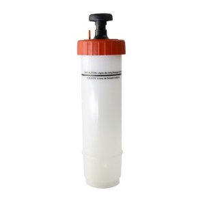 Butelka dozująca (czerwona lub niebieska) przeznaczona do czyszczenia natryskowego o pojemności 900 ml.