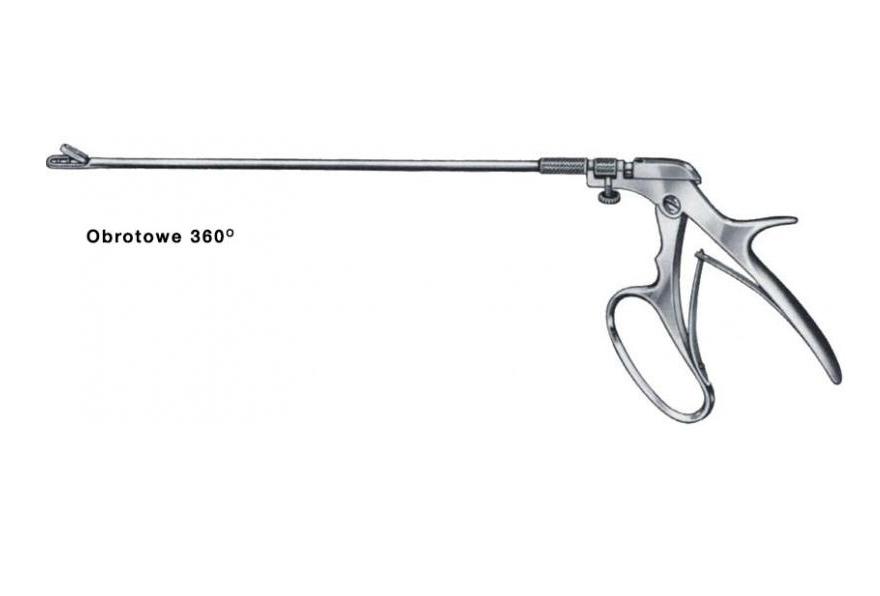 Kleszczyki do biopsji z obrotowym trzonkiem i rozłączalną rękojeścią, dostępne w trzech długościach trzonka, z zębatą lub gładką końcówką prostą lub zagiętą.
