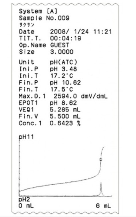 Titrator japońskiej firmy DKK-TOA, o bardzo dobrej relacji jakości do ceny. Wyposażony w bardzo wydajny procesor, pozwalający na przeprowadzanie wszystkich rutynowych miareczkowań, w tym na miareczkowanie symultaniczne: jednocześnie mogą być przeprowadzane np. dwa różne miareczkowania oparte na różnych metodach i sterowane dwa niezależne stoliki obrotowe.