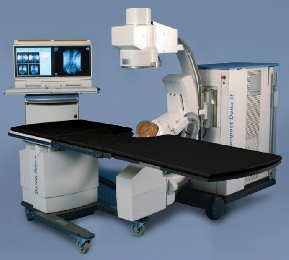 Dornier Compact DELTA i Compact SIGMA są urządzeniami umożliwiającymi jedno- czasową wizualizację złogu za pomocą obrazu ultrasonograficznego i rentgenowskiego. Dzięki izocentrycznemu umieszczeniu głowicy kruszącej z ramieniem ustalającym głowicy ultrasonograficznej na rentgenowskim ramieniu C możliwe jest podwójne obrazowanie bez żadnych „martwych" obszarów -nigdy głowica USG nie zasłania promieni RTG. Lokalizacja złogu może być rozpoczęta za pomocą systemu RTG i po automatycznym ustaleniu położenia głowicy kruszącej sprawdzona i zweryfikowana przez system USG lub rozpoczęta za pomocą systemu USG i sprawdzona i zweryfikowana za pomocą systemu RTG. Izocentryczna konstrukcja litotryptera zapewnia taką podwójną kontrolę. Znakomicie rozwiązany sposób podwójnego, jedno-czasowego obrazowania, za pomocą ultrasonografu i rentgena, bez żadnych ograniczeń i „martwych obszarów" jest unikalnym rozwiązaniem firmy Dornier, a ramię mocowania głowicy USG jest opatentowane przez firmę Dornier. Ruchliwość głowicy kruszącej razem z ramieniem C-RTG oraz niezależne ruchy samej głowicy ( obrót w zakresie -190 stopni do +10 stopni oraz przechyły w zakresie-8 do 45 stopni), zawsze umieszczonej izocentrycznie, sprawiają, że obsługa urządzenia jest bardzo łatwa, a ustawienie bardzo precyzyjne w stosunku do kruszonego złogu. Oferowane stoły zapewniają wykonanie całego zakresu zabiegów endourologicznych Uniwersalność rozwiązań technologicznych daje możliwości rozbudowania litotryptera o dodatkowe opcje np. IPP, ortopedia. Zespół terapeutyczny z elektromagnetycznym źródłem fali uderzeniowej; ¦ wysoka skuteczność i dynamika dornierowskiego elektromagnetycznego emitera fali uderzeniowej Dornier Emse-140f; ¦ maksymalna głębokość penetracji 150 mm; ¦ gwarantowana żywotność głowicy kruszącej 1 mln impulsów przy pełnej 100% sprawności (zabiegi dla 400 pacjentów); ¦ 9 różnych poziomów energii od 4,1 do 61 mJ przy 5 stopniach dynamiki wyznaczania energii (45 stopni ustawienia wartości energii w ognisku); ¦ zmiany gęstości energii 0,05 - 0,88 mJ/mm2; ¦ ciśnienie w ognisku 8 - 51 MPa (Fiberoptical Hydrophone); ¦ średnia wielkość ogniska(FHWM) 6,7mm x 79mm; ¦ możliwość wyzwalania fali uderzeniowej: stała częstotliwość 60 - 180 uderzeń na min lub wyzwalane sygnałem EKG; ¦ natężenie hałasu mierzone przy głowicy kruszącej < 58 dB; ¦ połączenie głowicy kruszącej do pacjenta w 5-ciu stopniach.