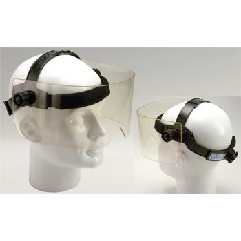 Ochrona twarzy z przezroczystą maską przeciwpyłową wykonaną z lekkiego akrylowego szkła ołowianego.