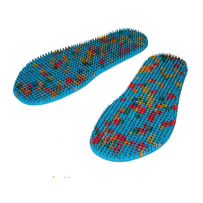 Tonizujące oddziaływanie — 5-7 minut w aktywnym ruchu (chodzenie, wyścigi); stojąc na wkładkach albo intensywnie „wałkując” stopy z wkładką.