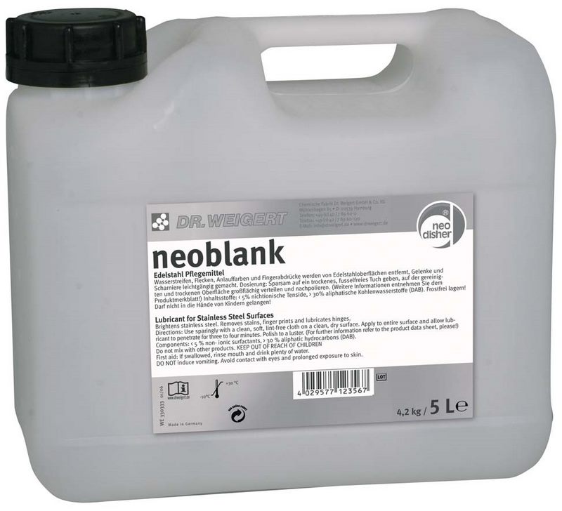 Środek pielęgnacyjny do stali nierdzewnej – płynny koncentrat. Pojemność: Butelki 12x0,75L, kanister 5L
