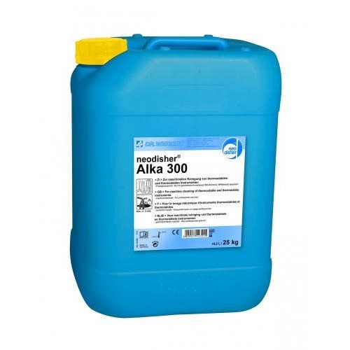 Ciekły środek alkaliczny do czyszczenia specjalistycznych maszyn myjących. Neodisher Alka 300 jest łagodnie alkaliczny i usuwa resztki krwi, białek i pozostałości organicznych. Nie ma wpływu na narzędzia ze: stali, stali chromowej, chromowanych i niklowanych materałów, czystego aluminium, stopów aluminium-magnez i zwykłych tworzyw sztucznych. Testy przydatności powinny być przeprowadzone przed użyciem w przypadku specjalnych przyrządów, np. przyrządów optycznych lub sprzętu do znieczulania i do respiratorów, a także aluminium anodyzowanego.