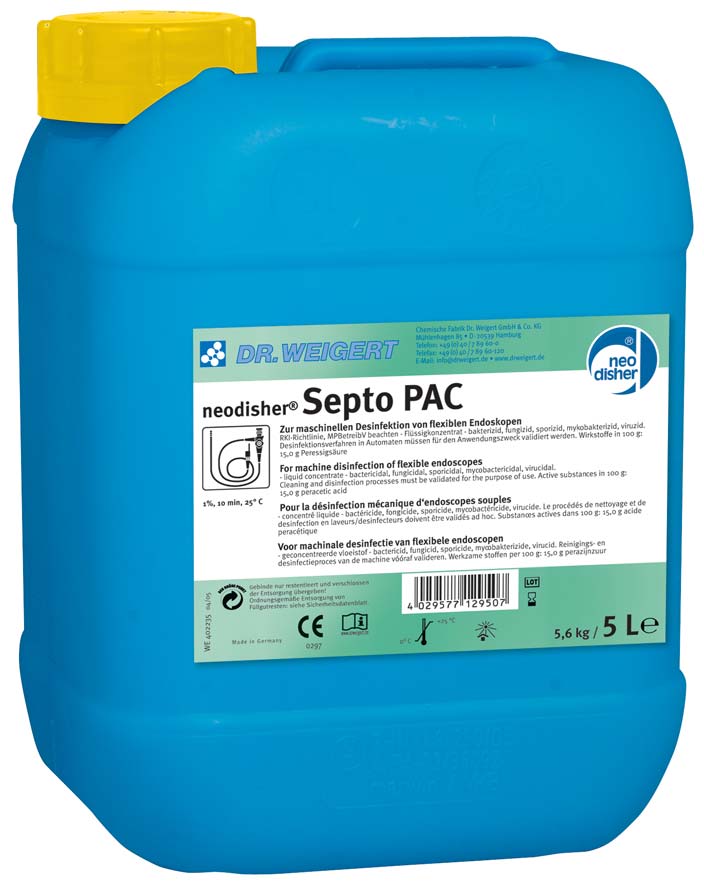 Środek dezynfekcyjny, płyn. Bakteriobójczy, grzybobójczy, prątkobójczy, wirusobójczy i sporobójczy. Zawiera kwas nadoctowy - jeden proces myjący, bez potrzeby użycia aktywatora!. Szybka i bezpieczna dezynfekcja w szerokim zakresie działania mikrobójczego w temp. 25°C. Kompatybilność materiałowa potwierdzona wykonaniem kilkunastu tysięcy cykli. Nie zawiera aldehydów. Użycie środka zostało opatentowane. Pojemność: kanister 4,75l