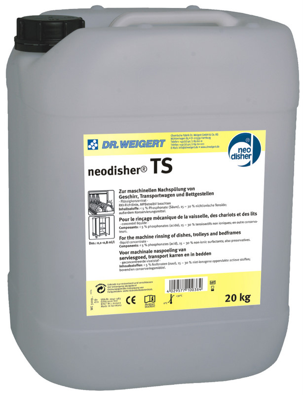 Środek płuczący. Kwaśny odczyn, zapobiega osadom kamienia wodnego, uniwersalne zastosowanie. Odpowiedni do zastawy z porcelany, stali nierdzewnej i tworzyw sztucznych.