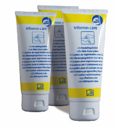 Krem do pielęgnacji skóry. Do pielęgnacji rąk po pracy. Bez zapachu. Bardzo łagodny dla skóry, dermatologiczna ocena. Używany poprzez dozownik mydła triformin.